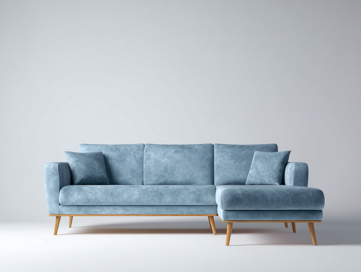 Divano angolare in stile nordico, caratterizzato da leggerezza visiva e comfort.
