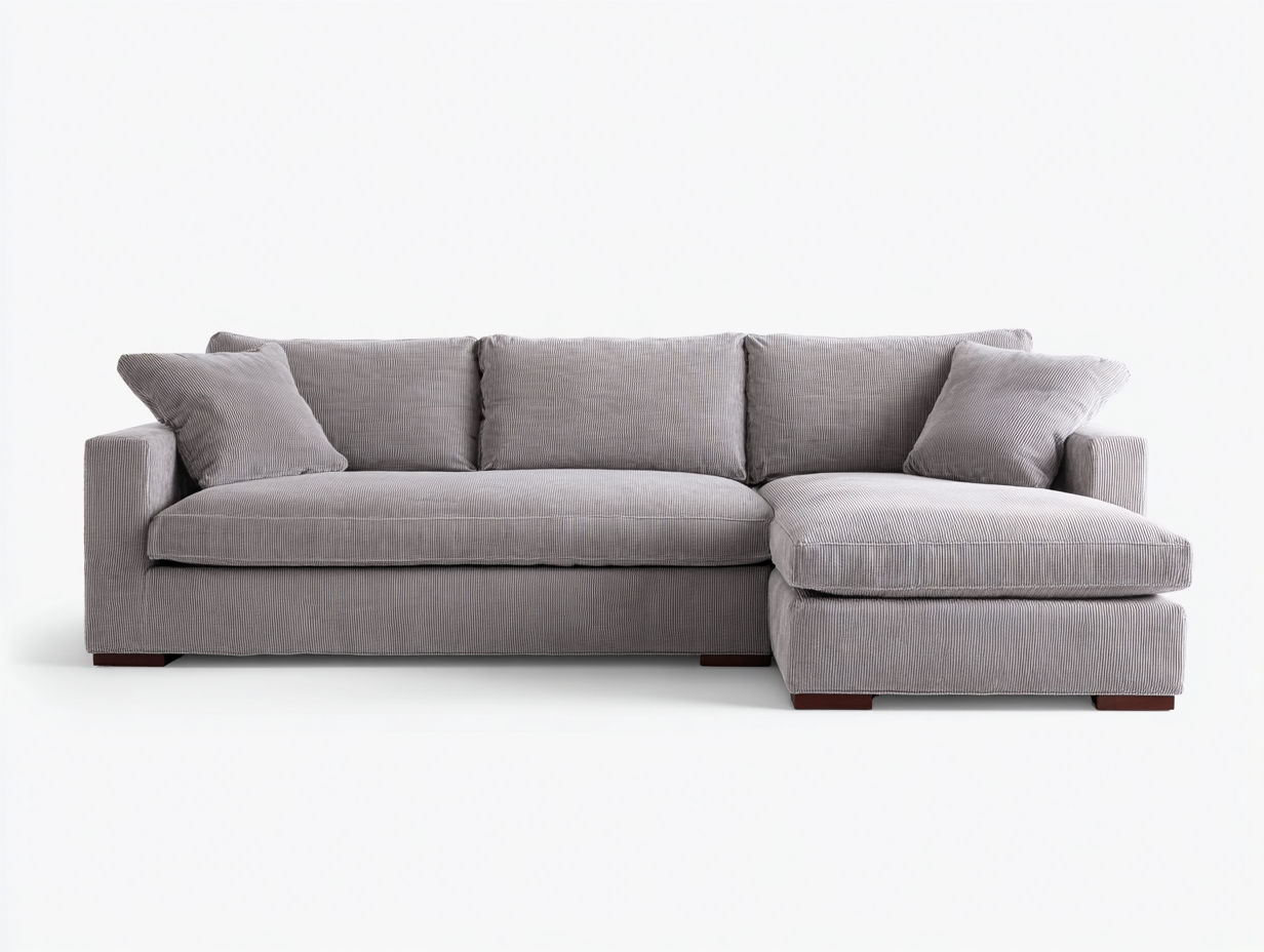 Divano angolare moderno con linee morbide, pensato per il comfort quotidiano del soggiorno.